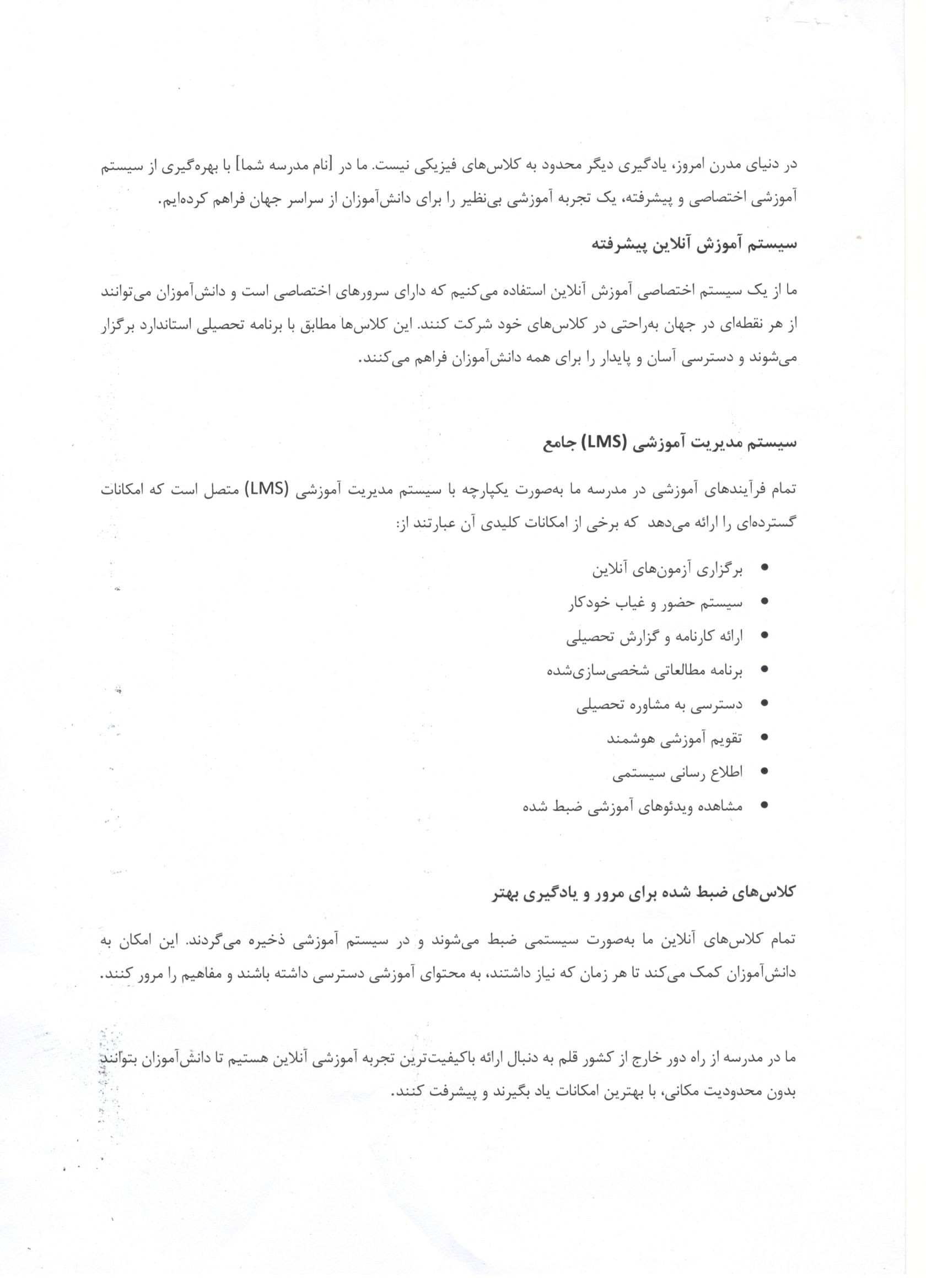 اطلاعات تکمیلی در فایل ضمیمه و صفحه رسمی مدرسه موجود میباشند.