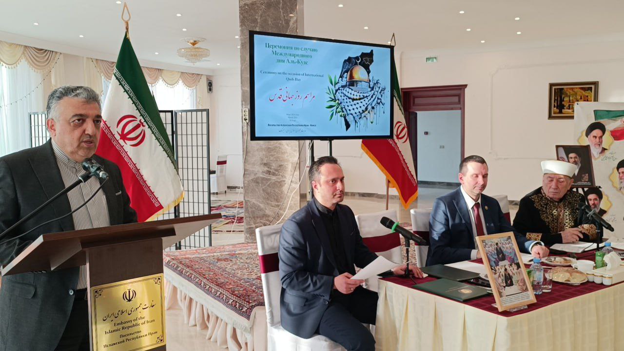 مراسم گرامیداشت روز جهانی قدس به میزبانی سفارت جمهوری اسلامی ایران در مینسک در روز جمعه ۲۲ اسفند ماه ۱۴۰۴ برگزار گردید.
